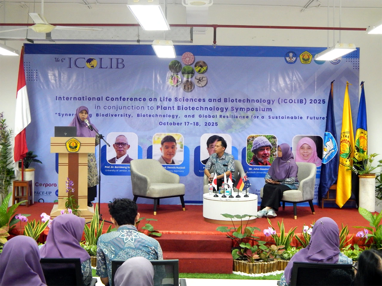 Jurusan Biologi FMIPA Universitas Jember gelar The 6th International Confrerence on Life Sciences and Biotechnology (ICOLIB) 2025 secara hybird (17-18/10). ICOLIB adalah seminar internasional yang diagendakan setiap dua tahun sekali. ICOLIB pertama diadakan sejak tahun 2015, dan tahun 2025 ini adalah gelaran keenam. Mengambil tema “Synergizing Biodiversity, Biotechnology, and Global Resilience for a Sustainable Future“. Bertempat di Hall Natural Science and Food Technology (NSF) lantai 4 Gedung IsDB, ICOLIB 2025 juga berselaras dengan agenda Plant Biotechnology Symposium oleh UPA Pengelolaan Limbah dan Laboratorium Terpadu (PL2T) UNEJ.
