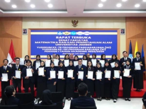 FMIPA UNEJ held the 78th Postgraduate (S2) and 110th Undergraduate Graduation of the Faculty of Mathematics and Natural Sciences, University of Jember, period I, Academic Year 2025/2026 (24/7). Held at the Auditorium of the Entrepreneurship Building, University of Jember. In the graduation speech, Deputy Dean I of FMIPA UNEJ Prof. Dra. Hari Sulistiyowati, M.Sc., Ph.D. said that graduation is not the end of a journey. “Graduation is a gateway to a greater world that will be traversed, namely the world of work, community service and further self-development,” she said. It is said that an academic degree is not a symbol but an internal, intellectual and moral responsibility that must be maintained.