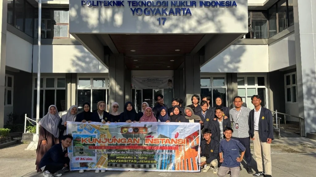 Undergraduate Physics students from the University of Jember conducted an academic visit to the nuclear facility owned by the National Research and Innovation Agency (BRIN), located in the Ahmad Baiquni Science and Technology Area (KST), Yogyakarta. The visit took place on Wednesday, July 9, 2025, from 8:00 a.m. to 4:00 p.m. Western Indonesian Time (WIB). Twenty-two students from the Vector Physics Student Association (HIMAFI) and the Nuclear Physics Club (NPC), along with two Physics lecturers as advisors, participated.
